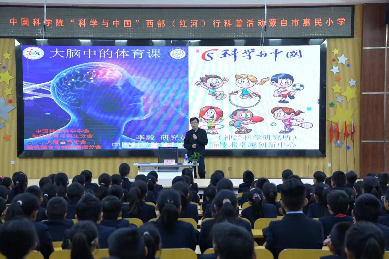 11月3日至4日,李毅研究員參與上海分院組織的“科學與中國”西部行科普活動,歷經十小時路程遠赴紅河,將優質科學資源送達西部青少年身邊。他為蒙自市惠民小學、文瀾中心學校帶來“大腦中的體育課”與“心靈閃電”科普報告,從腦控機械臂的原理講到光遺傳學的前沿應用,并結合團隊突破國外技術封鎖、自主研發無線植入腦機接口的真實案例,詮釋了科學家堅守報國的“硬核”精神,點燃了西部青少年探索科學的熱情。