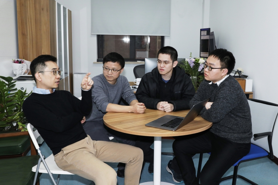 3:王立平研究員、閔斌副研究員、研究助理胡沛烑、博士后謝洋討論課題
